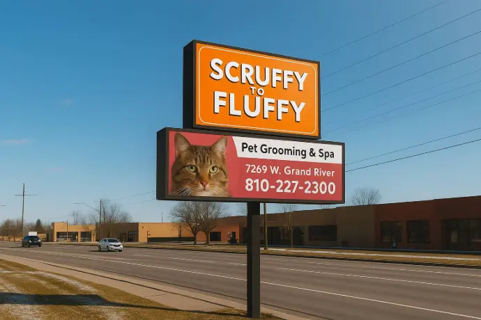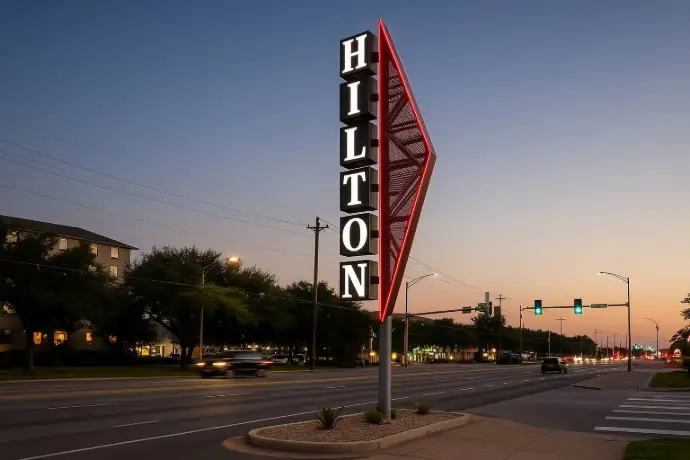 Tall, elevated signage designed for long-distance visibility, often along roads and highways.