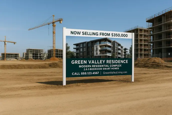 Temporary job-site signage displaying project details, safety info, or contractor branding.